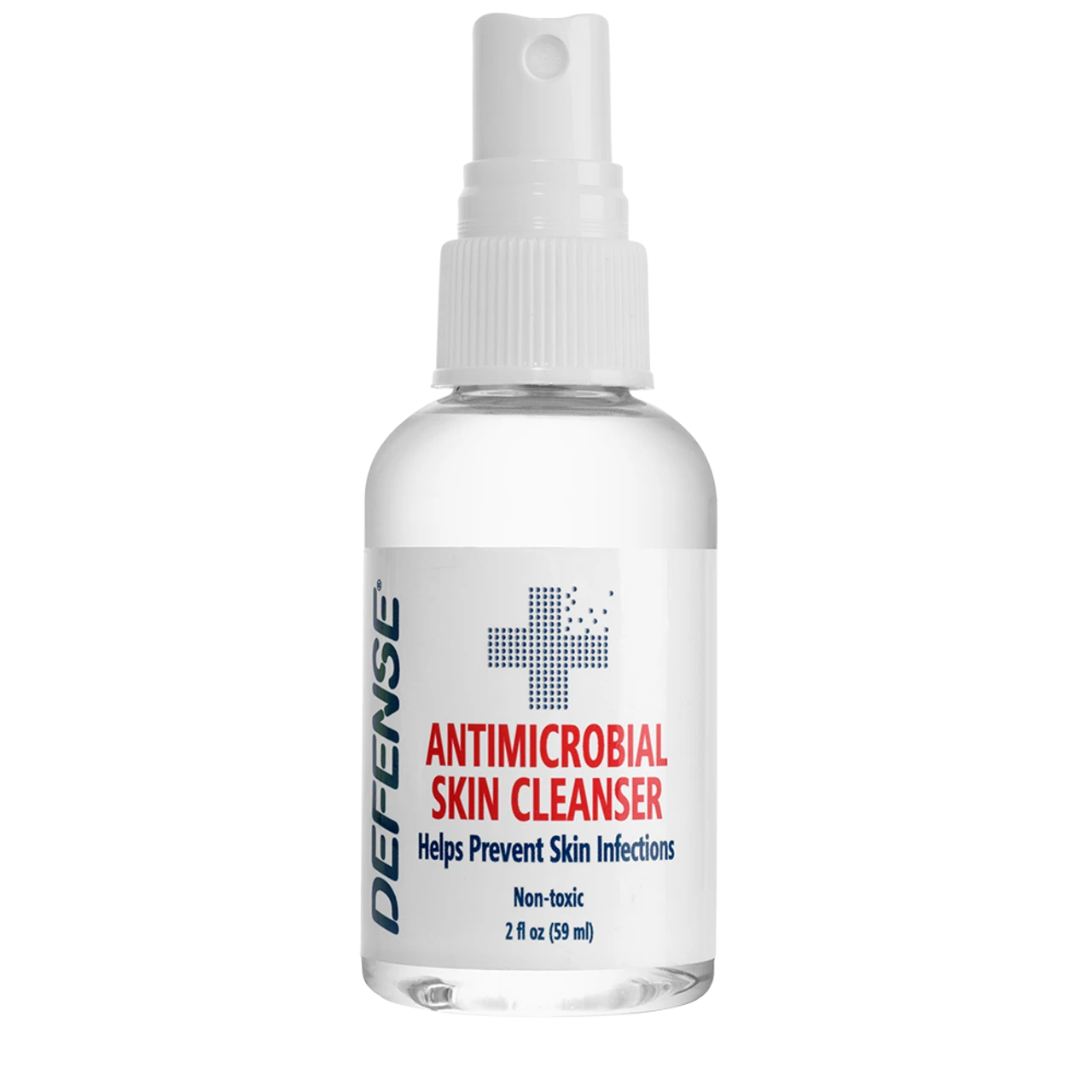 Our FDA cleared antimicrobial spray is a safe, non-toxic, and effective skin cleanser that also helps clean minor wounds and scrapes. It has an easy to use point and spray application system that immediately cleanses the skin after any physical contact. This spray uses the cleansing power of hypochlorous acid in a safe, non-irritating, non-greasy, alcohol and steroid free formula that is safe to use on all parts of your body and face. It dries rapidly with no residue and requires no rinsing. Our antimicrobial skin cleanser is free from triclosan, harmful cleaning chemicals, added fragrances, and greasy oils. This product is made in the USA.
