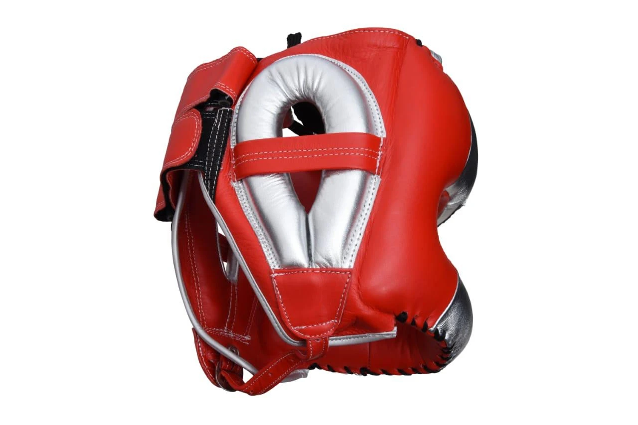 This is a three point anatomical design traditional headgear made ideal for sparring, reducing punches to the face. It gives a full coverage protection lightweight nylon face bar with hook and loop rear closure. Made with an adjustable chin strap and lace at the top for extra security and better placement. Made with natural leather and latex foam padding. In addtion this head gear has side ear straps which addtionally protect both ears. One size fits all.